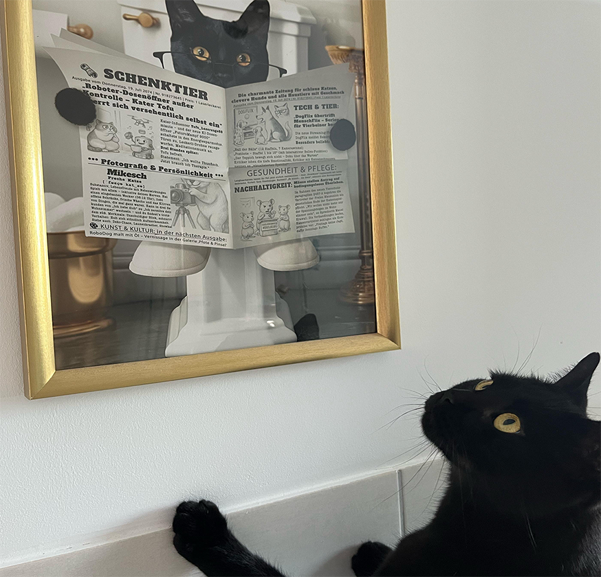 In wenigen Klicks wird aus deiner Katze eine Titelseite: Du wählst Name, Fell-Charakter und Stil – wir machen daraus ein Poster, das für Gesprächsstoff sorgt (selbst dort, wo man lieber allein ist).